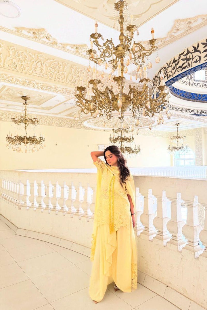 ✨ Client Testimonial ✨Our gorgeous client looks effortlessly elegant in this soft lemon ensemble.The graceful drape and intricate detailing make it a perfect choice for daytime celebrations.A look that beautifully blends...