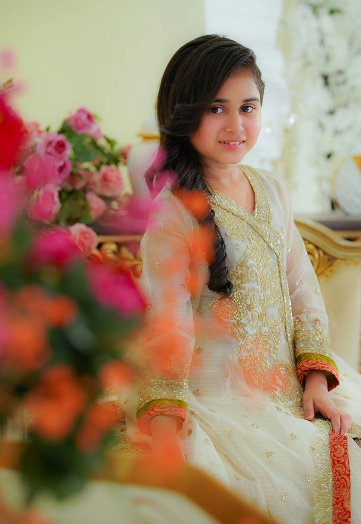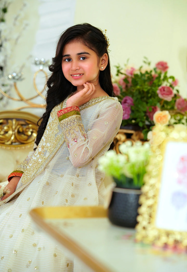 Elevate your Kids look with Hoor-e-Jahan | KHJ-005 from Kashee's Boutique. A masterpiece of elegance and intricate craftsmanship, perfect for weddings and grand celebrations. Shop now to dazzle in style!"