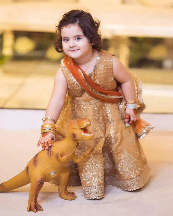 Handcrafted with meticulous care, our pieces have a lot of diligence and love invested in them. The exquisite craftsmanship requires laborious hours. Product Detail Embroidered kundan zari pishwas Embellished net sleeves...