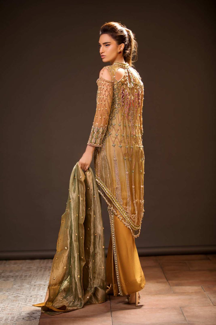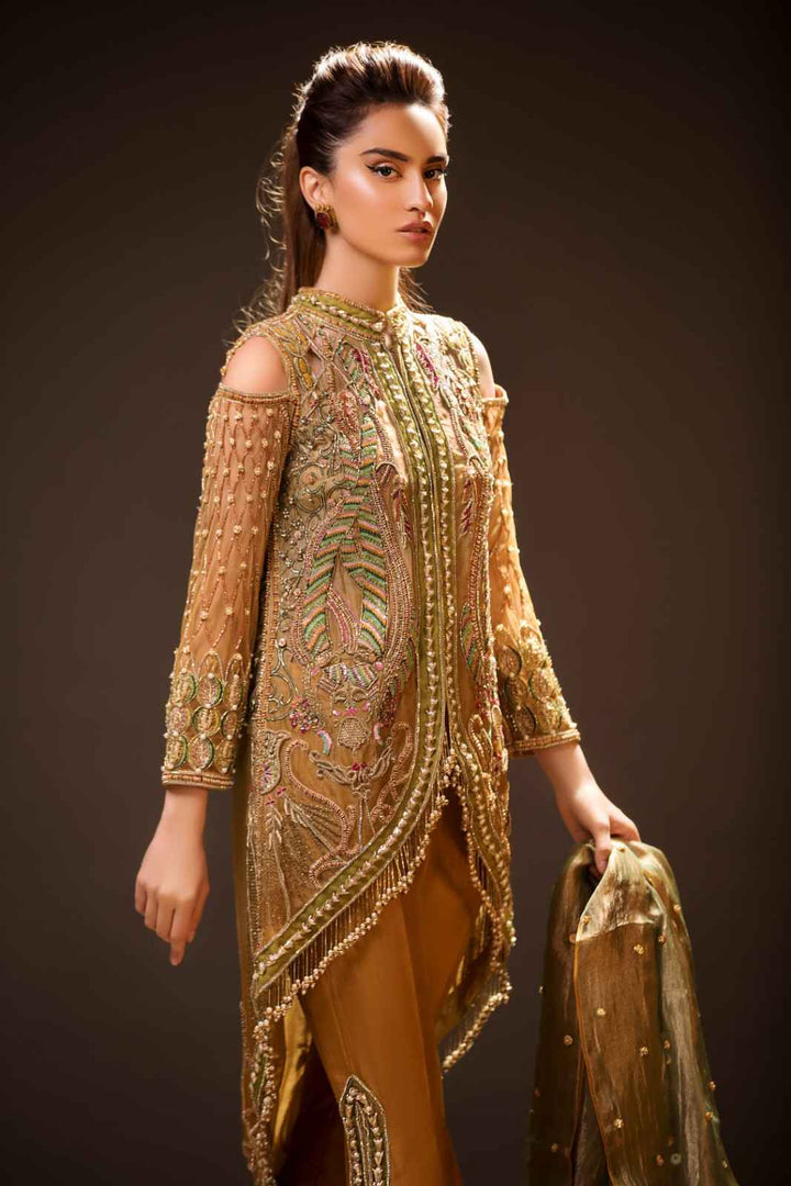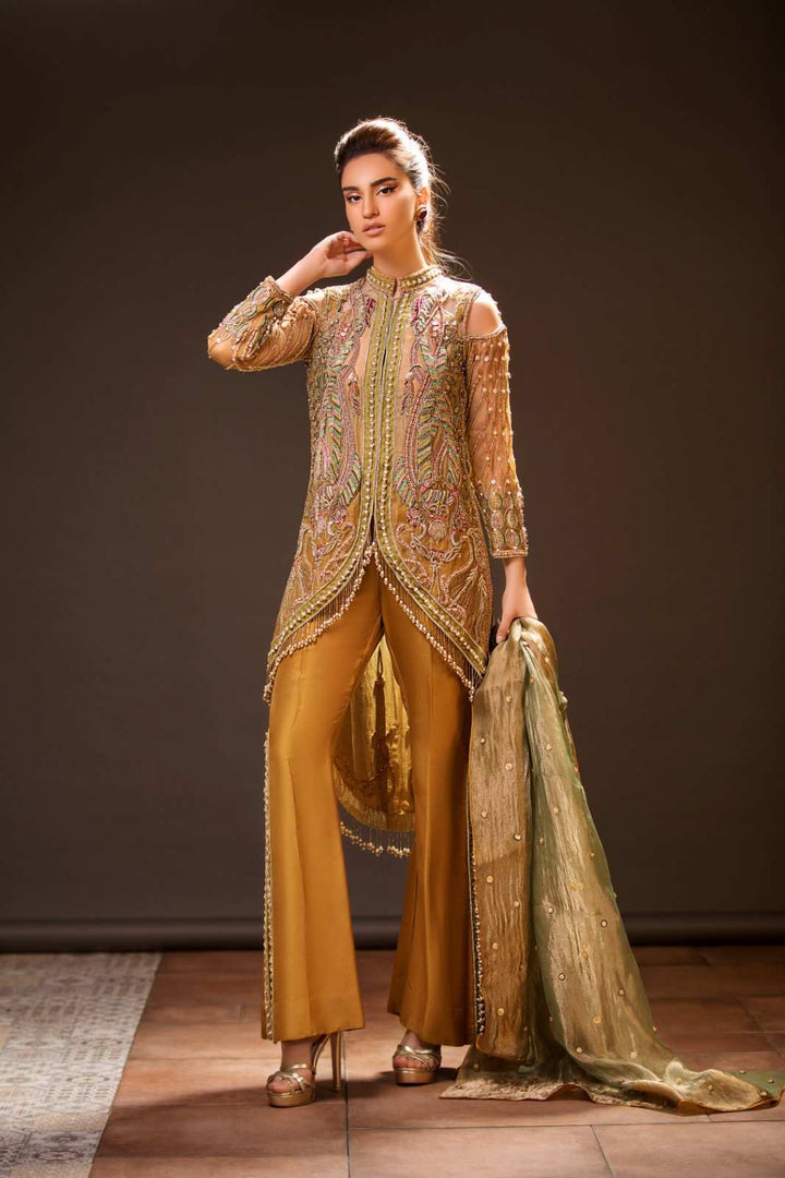 Gold Tissue Shirt, Dupatta, bellbottom Colour : Mustard