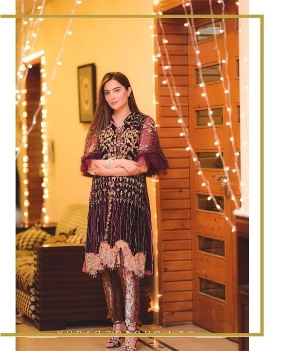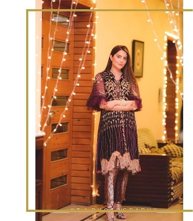 The purple ensemble is a construction of contrasting fabrications from velvet to brocade. Multi-colored embellishments add more dynamics to this show stopper.